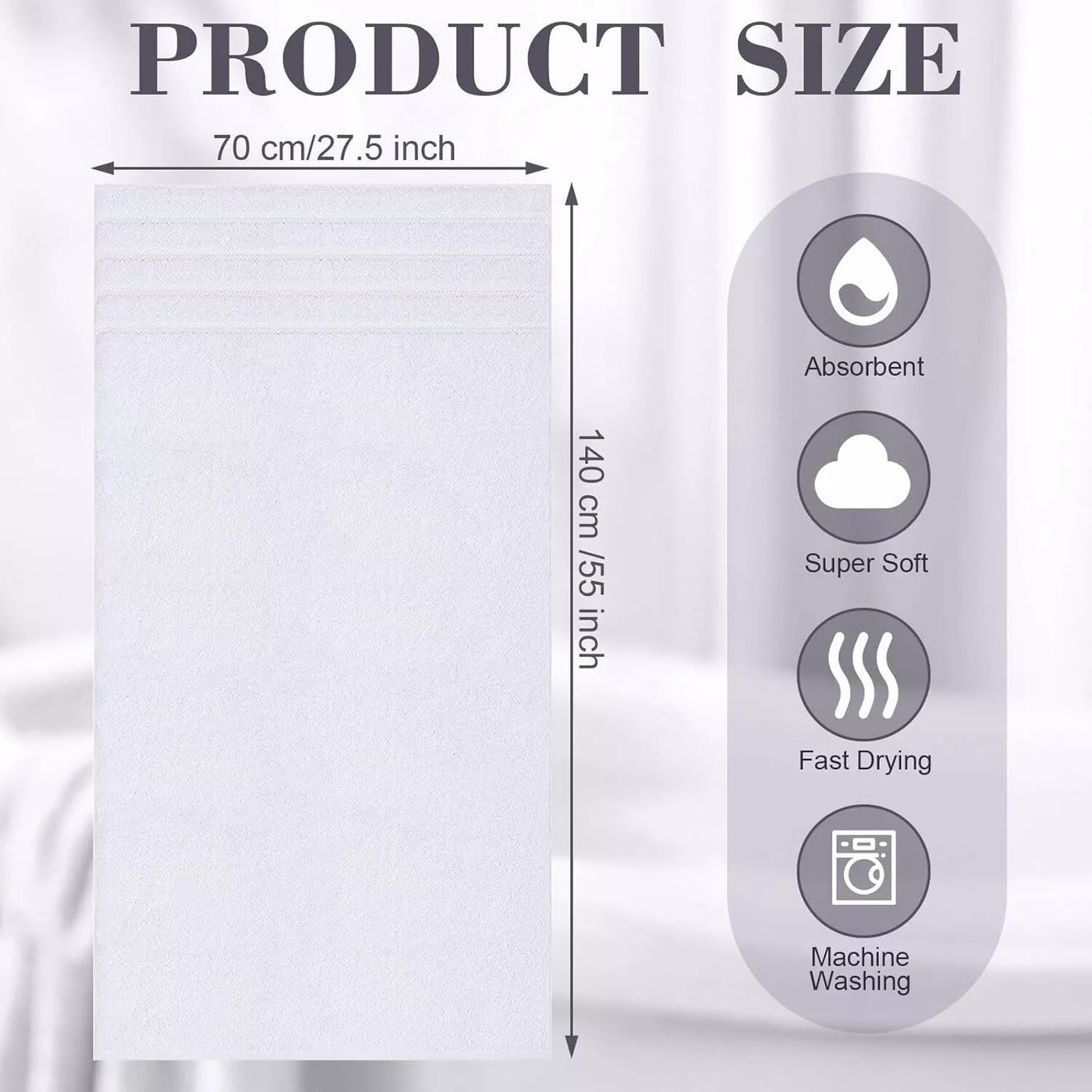 Enjoy a luxurious bathing experience with our 4-Pack Luxury White Bath Towels. Made from 100% Egyptian Cotton, they are known for softness, durability, and absorbency. These towels bring comfort and elegance to your home or make a perfect gift.hotel quality towels
